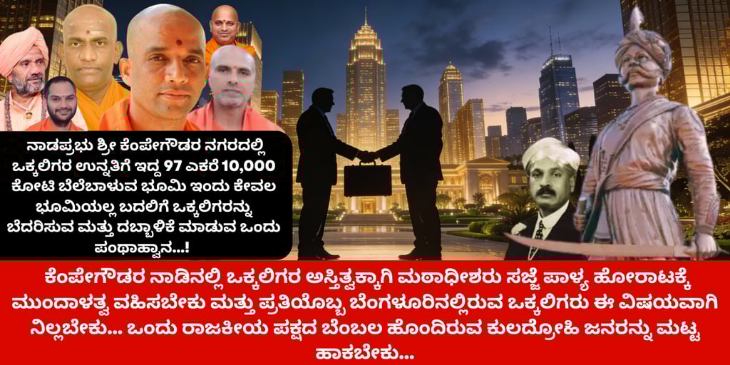 ಈ ಕೆಳಗಿನ ವಿಷಯವು ಒಕ್ಕಲಿಗ ಸಮುದಾಯದ ಅಸ್ತಿತ್ವ ಮತ್ತು ಸ್ವಾಭಿಮಾನಕ್ಕೆ ಸಂಬಂಧಿಸಿದ್ದಾಗಿದೆ. ಸಜ್ಜೆಪಾಳ್ಯದ ಸರ್ವೆ ನಂ. 15ರ ಜಮೀನಿನ ಕುರಿತು ಸರ್ಕಾರಿ ದಾಖಲೆಗಳು ಮತ್ತು ಅರ್ಜಿ ಸಮಿತಿಯ ವರದಿಗಳು ಸ್ಪಷ್ಟವಾದ ಸತ್ಯವನ್ನು ಬಿಚ್ಚಿಟ್ಟಿವೆ.