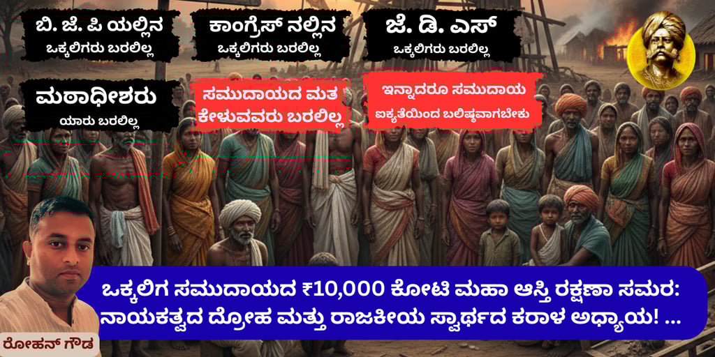 ಒಕ್ಕಲಿಗ ಸಮುದಾಯದ ₹10,000 ಕೋಟಿ ಮಹಾ ಆಸ್ತಿ ರಕ್ಷಣಾ ಸಮರ: ನಾಯಕತ್ವದ ದ್ರೋಹ, ರಾಜಕೀಯ ಸ್ವಾರ್ಥದ ಕರಾಳ ಅಧ್ಯಾಯ ಮತ್ತು ಸಮುದಾಯದ ಜವಾಬ್ದಾರಿ!